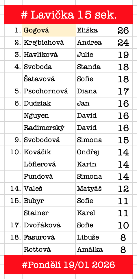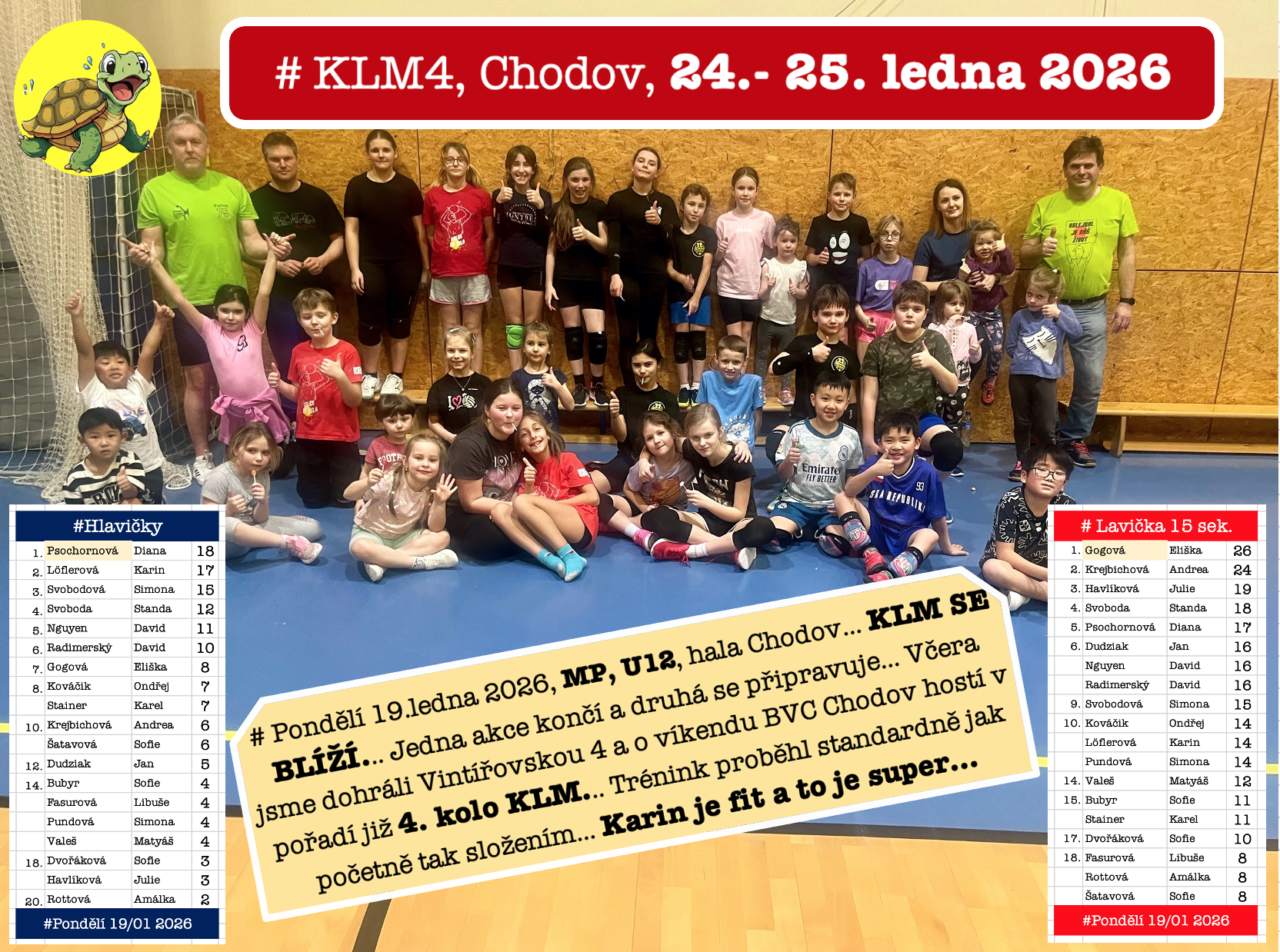 # Smečařský trénink, út 13/01 2026, hala Chodov. Natočila Eliška Schämmerová