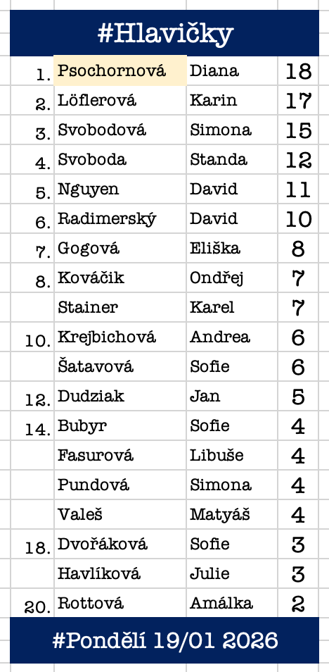 # Dnešní vyhodnocení dvojměsíce listopad/prosinec 2025