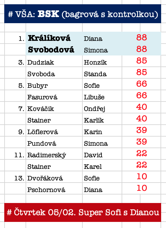 14- 15 Tučňáci (Chochola)... 15,35- 16,55 MP (Šrámková), 15,35- 16,55- 18,25 U12
