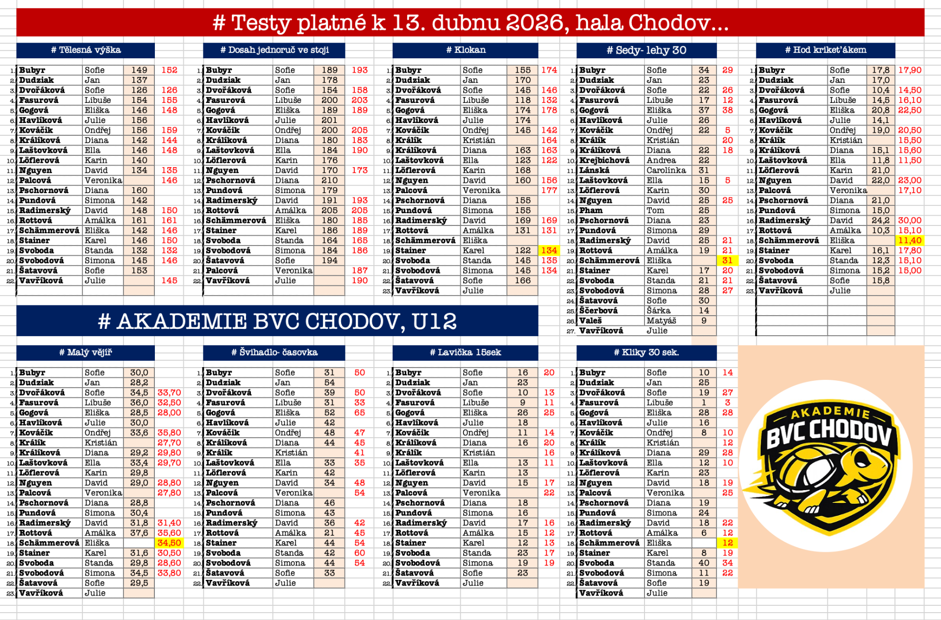 # Střediska Akademie BVC Chodov...