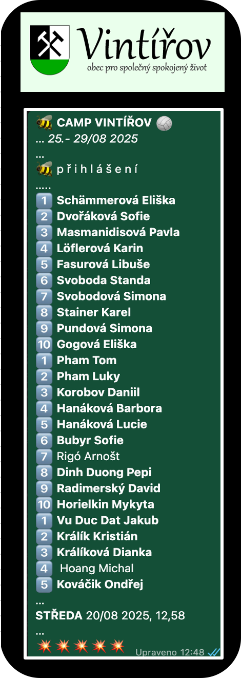Vintířovský CAMP v termínu 25.- 29. srpna 2025...